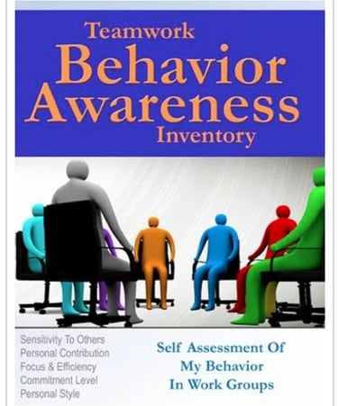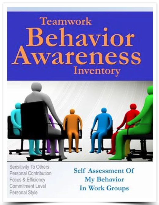 The Teamwork Behavior Awareness Inventory is a 25 question self assessment that measures an overall level of teamwork behavior & scores in five categories including: Sensitivity To Others, Contribution, Efficiency, Commitment & Personal Style.
